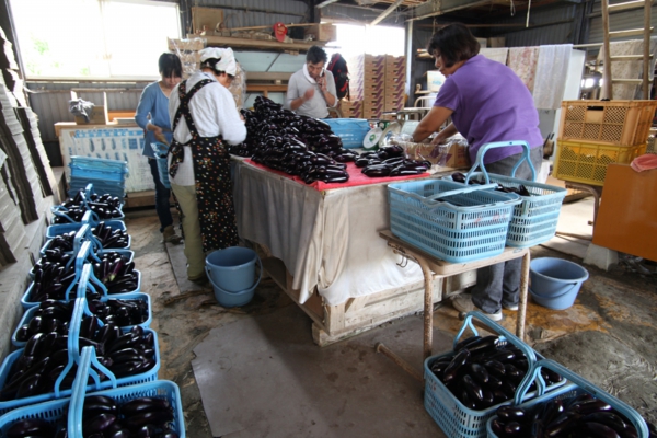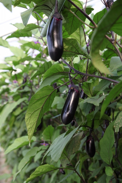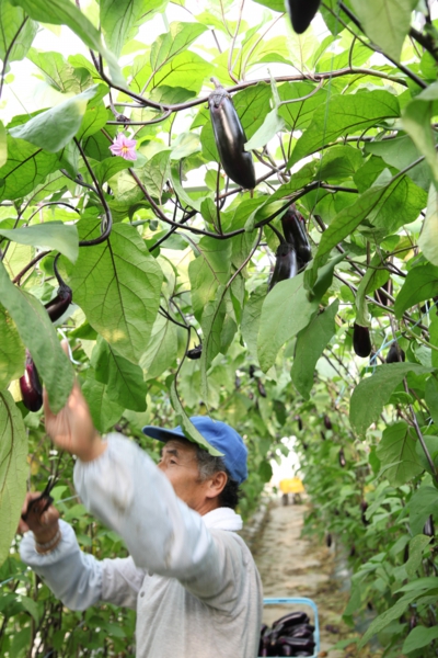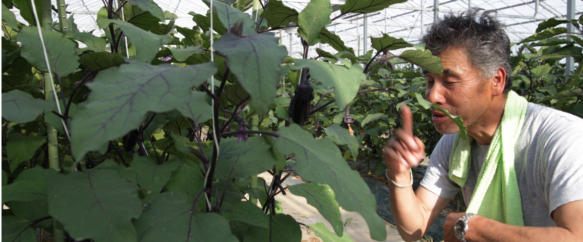 パイプハウスに入るとき、彼は茄子に「おはよう」と挨拶をする。