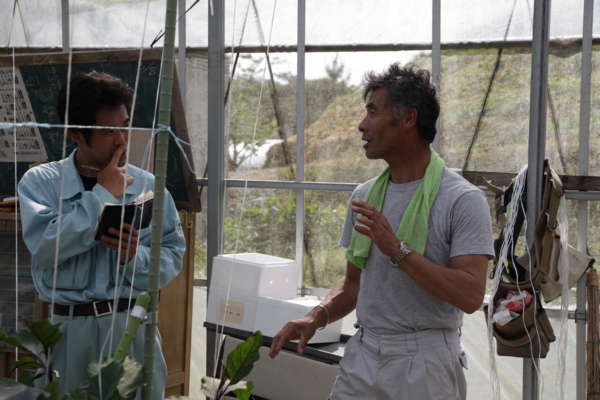 時には私のように彼の圃場に興味を持ったものが来場する。彼は栽培について詳しく説明をするが、理解できる人は多くはない。しかし、彼はまたその人が来れば、繰り返し説明をする。